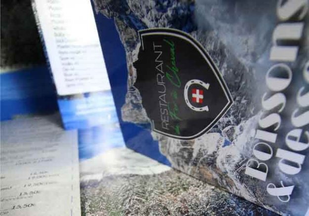 Captation photo, création graphique et impression supports de communication pour la saison d’hiver du restaurant du Fer à Cheval à Sixt-Fer-à-Cheval. Impression de 6 000 sets de table recto A3 avec menu intégré, de panneau dibond 3mm 80x60cm, de carte de visite et de cartes de boissons et desserts 10x21cm (format fermé), 2 volets un…