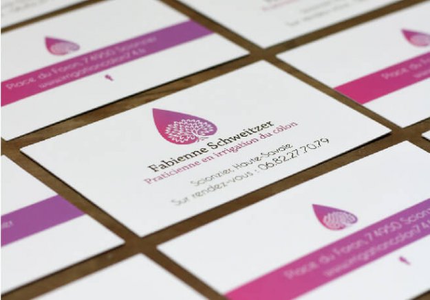 Création graphique et impression des cartes de visite et des flyers de prospection pour le cabinet d’irrigation du côlon de Fabienne Schweitzer, à Scionzier.